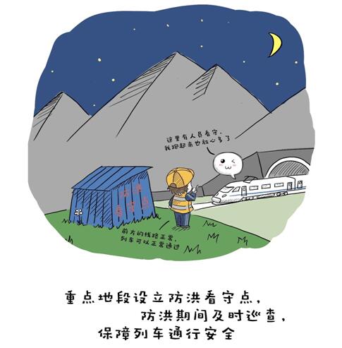 “牢固树立以人民为中心的思想,落实工作责任,严防灾害发生,全力保障人民群众生命财产安全。”两百多万铁军牢记使命、负重前行,全力为守护着祖国13.9万公里铁路大动脉的安宁与畅通。(文字:钱龙;漫画:张富)